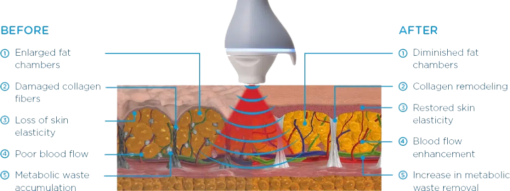 Процедурата подобрява еластичността на кожата, намалява целулита, изглажда текстурата и подпомага контурирането на тялото.